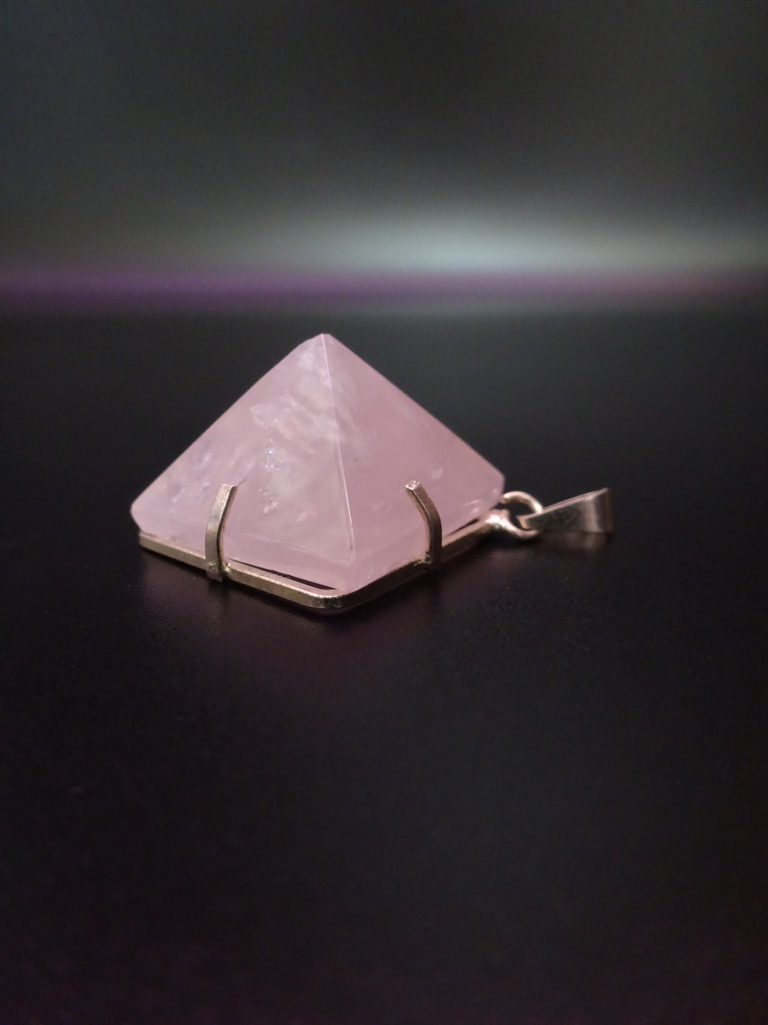 - Un colgante de cuarzo rosa en forma de pirámide tiene un simbolismo esotérico bastante profundo, porque se unen dos elementos con carga energética propia: