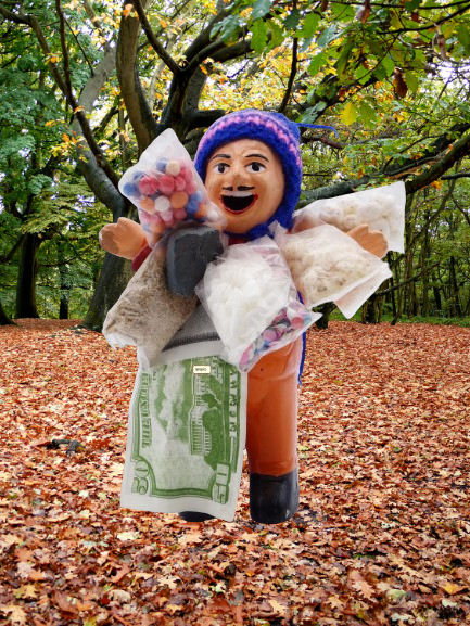 Su imagen representa a un hombre pequeño, gordito y sonriente, siempre cargado de objetos que simbolizan bienestar: billetes, alimentos, herramientas, electrodomésticos en miniatura, casas, autos, etc.