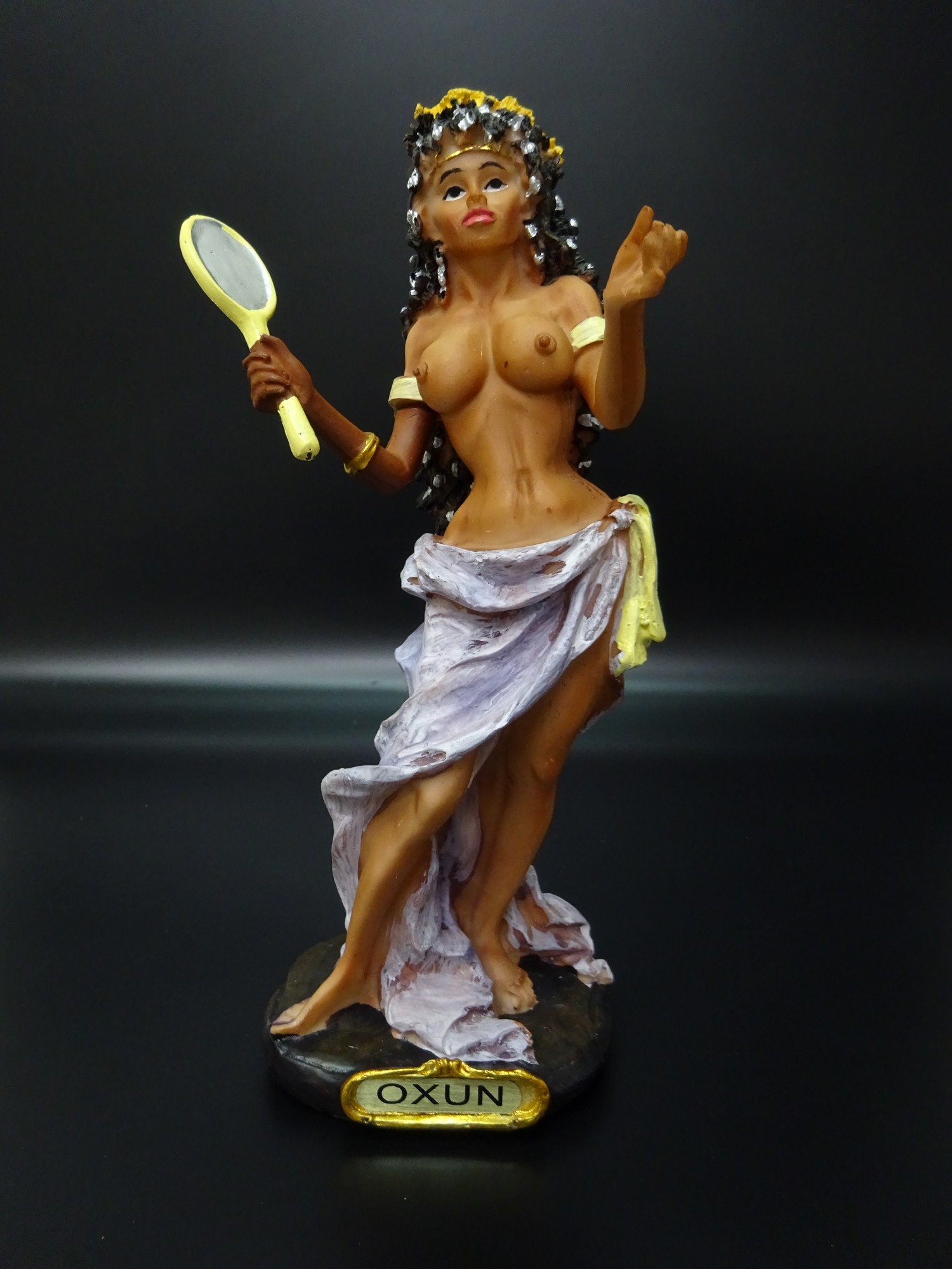 Oxun es la Orisha del amor, la dulzura, la belleza y las aguas dulces (ríos, manantiales). Representa la feminidad, la fertilidad y la prosperidad. Es una fuerza ligada al placer, la sensualidad y la capacidad de atraer cosas buenas.