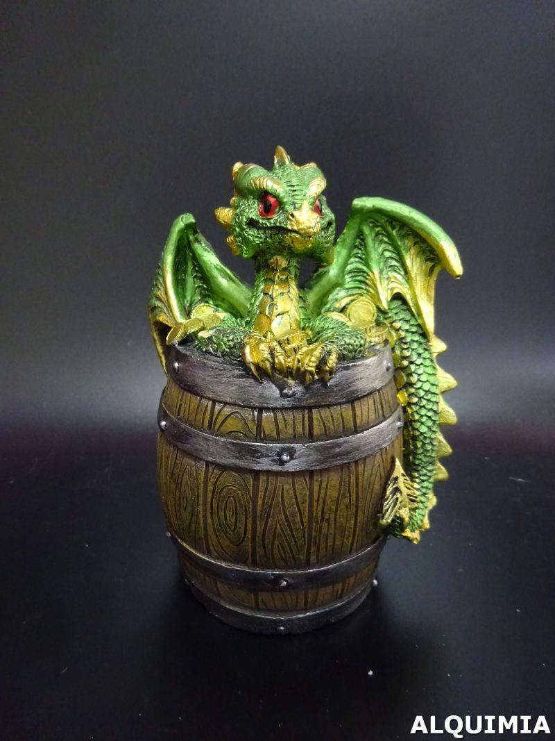 Figura de Dragón Bebé Dragón de los Elementos en Barril del Tesoro